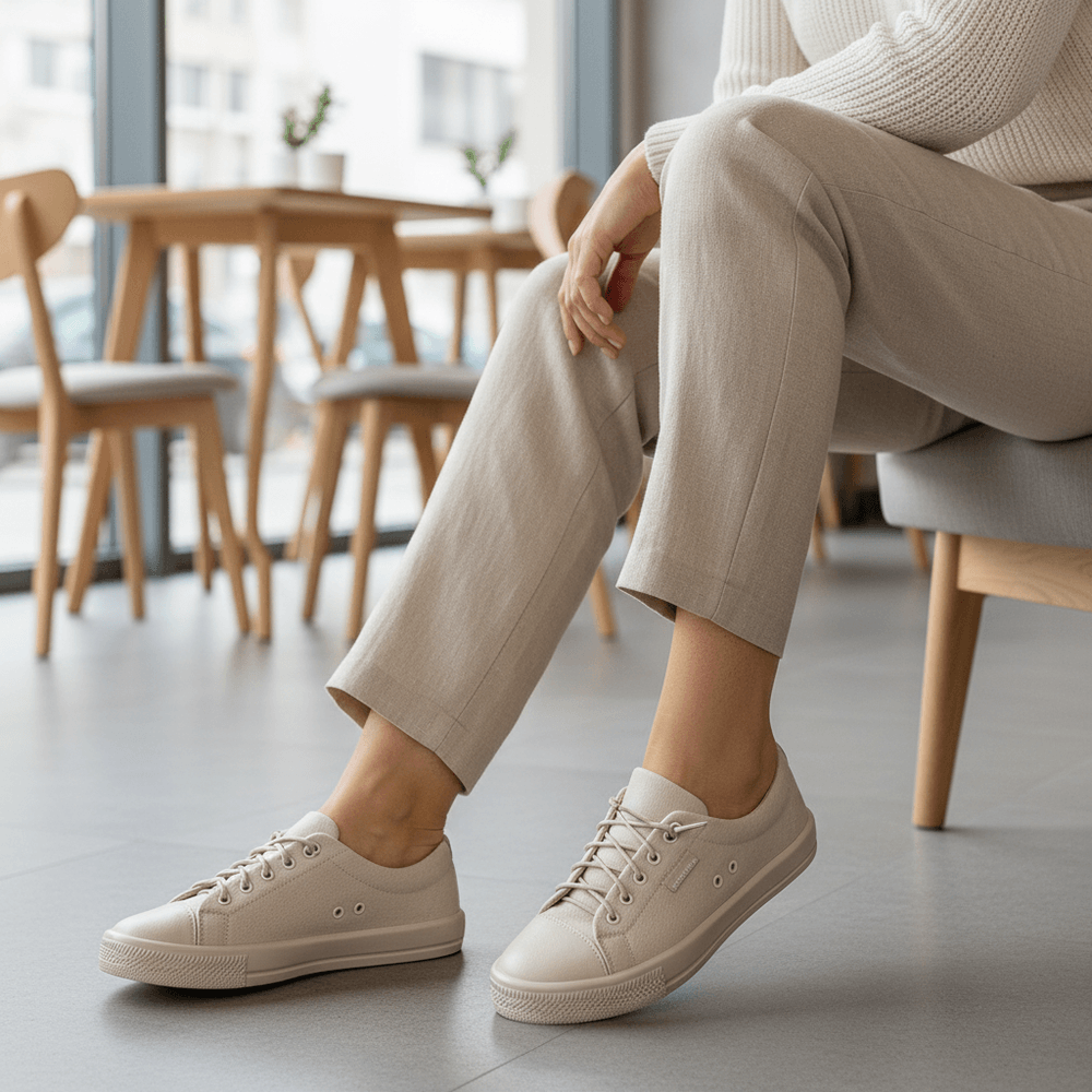 Ao calçar o Tênis Lucca, você sente a combinação perfeita entre elegância atemporal e conforto absoluto. Suas linhas delicadas e modernas elevam qualquer produção, enquanto o acabamento premium garante uma experiência única em cada passo.